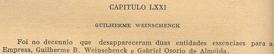 A morte de Guilherme B. Weinschenck foi a 18 de dezembro de 1921. A de Gabriel Osorio de Almeida ocorreu a 18 de março de 1926. Engenheiros ambos, eram os dois em tudo diferentes. Em Guilherme Weinschenck, o espírito construtor silencioso, avesso
