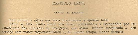 Naquele porto a estiva custa, no mínimo, 6$000 por tonelada, ao passo que em Santos custa 2$000.