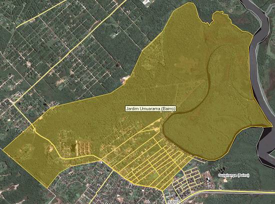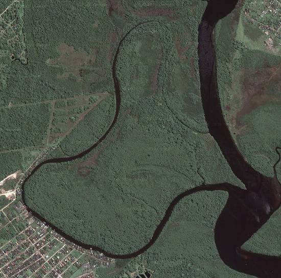 direita do Rio Itanhaém, em foto por satélite, em 2010