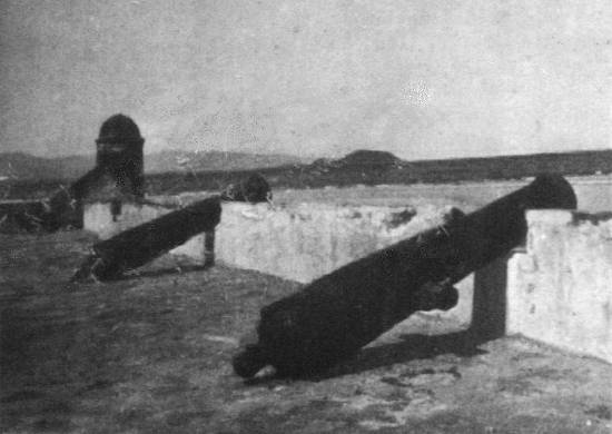 Os canhões da Fortaleza de São João, ainda na posição de tiro