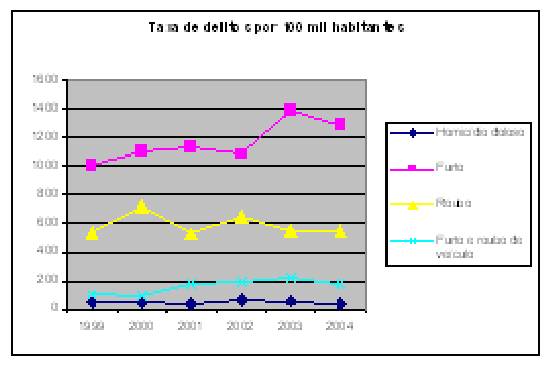 Taxa de delito por 100 mil habitantes em 2004