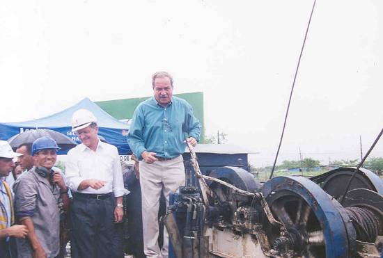 O prefeito aciona o bate-estacas
