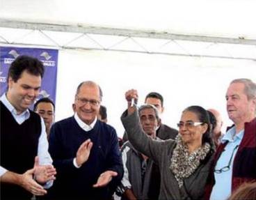 água nos conjuntos habitacionais Imigrantes I e II, no Bolsão 9. Alckmin esteve ontem na Cidade para entregar outras 320 moradias no local.