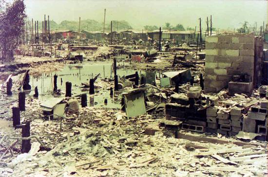 Vila Socó, destruída pelas chamas com a morte de cerca de cem pessoas, em 24/2/1984: