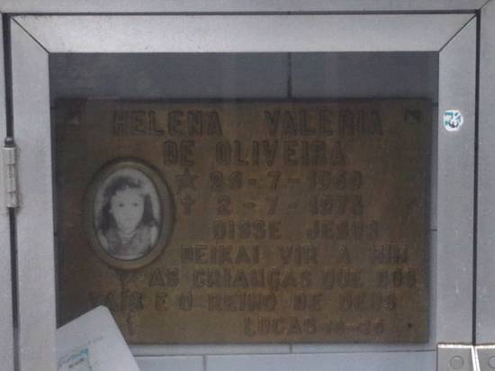 Jazigo da menina Helena Valéria de Oliveira (25/7/1969 - 2/7/1973), muito procurada pelos visitantes por causa de graças alcançadas