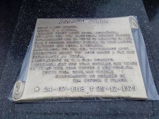 Jazigo do primeiro prefeito de Cubatão, Armando Cunha, e sua esposa Helena
