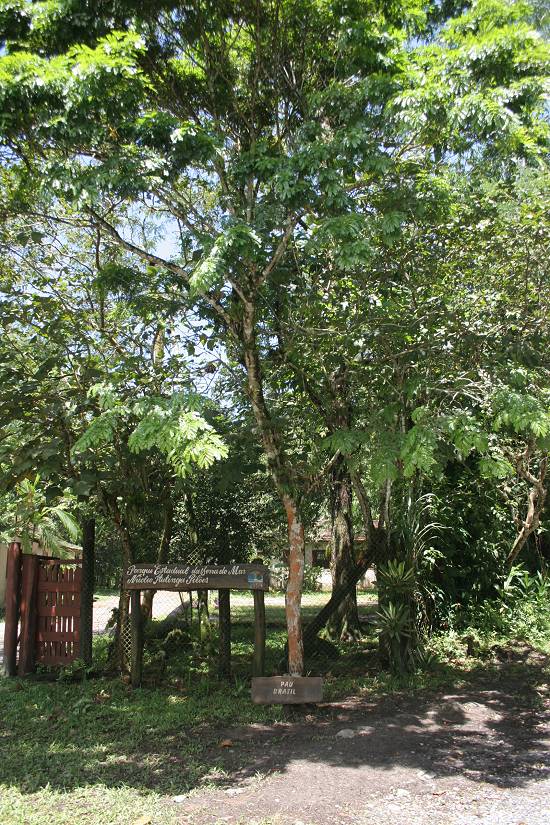 No acesso ao parque, um espécime de pau brasil