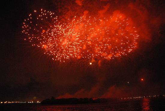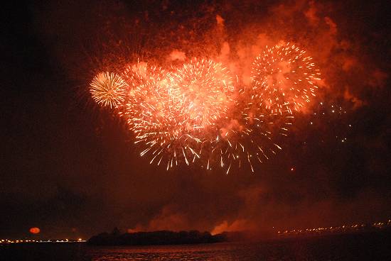 Espetáculo pirotécnico na Ilha Pompeba, visto do Jardim