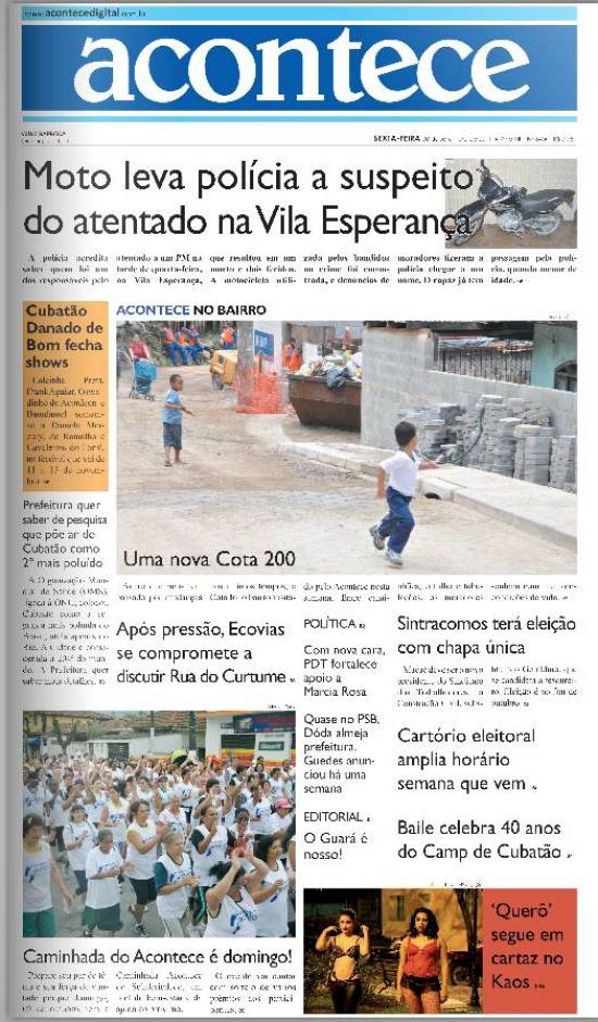 Imagem: página 1 do jornal Acontece, edição de 30 de setembro de 2011