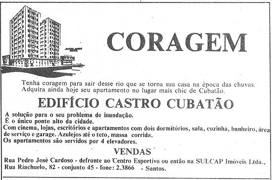 Publicidade do Edifício Castro Cubatão, destacando o cinema