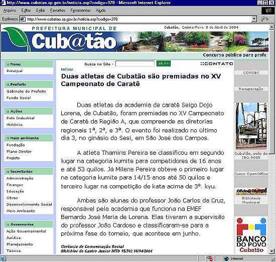 pelo jornal santista Expresso Popular, de 9 de abril de 2004: