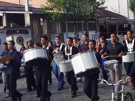 pelas ruas, o acompanhamento da banda da escola