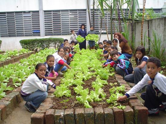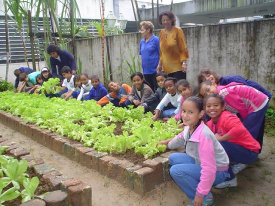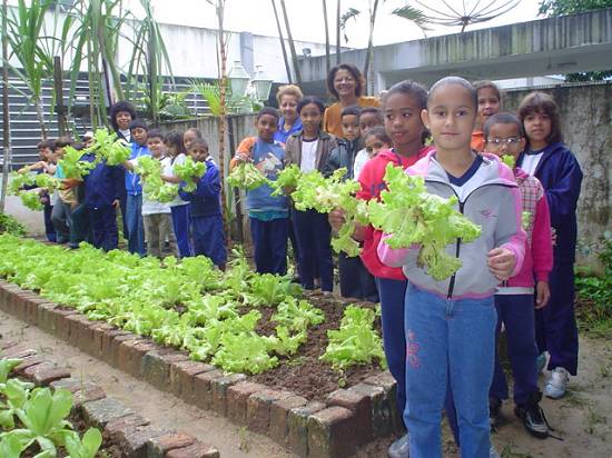Regular, com alface plantada e colhida pelos alunos com suas próprias