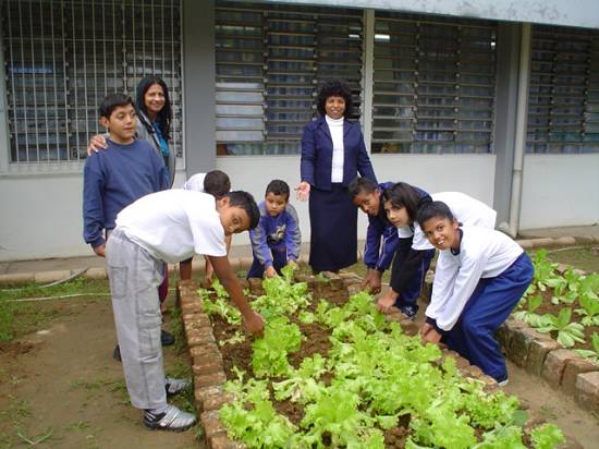 série foram ensinados a colher as folhas nos respectivos canteiros