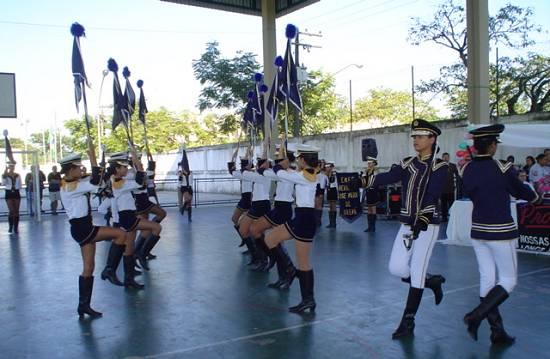 poliesportivo coberto da escola, abrilhantada pela Banda de Tambores e