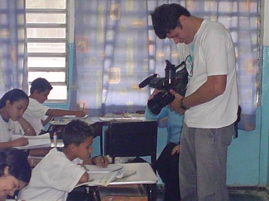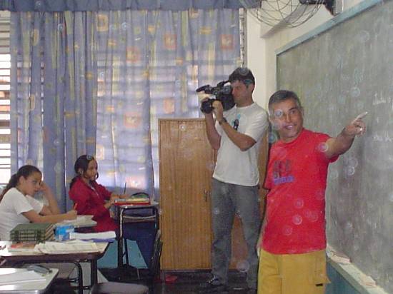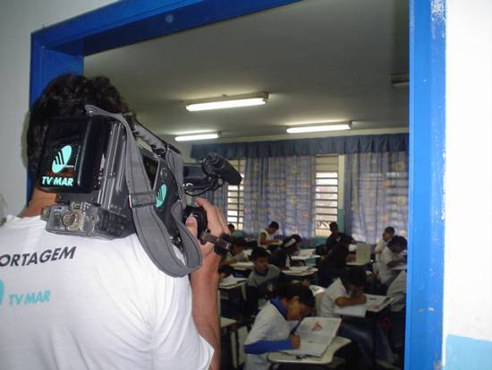 de imagens em salas de aula e corredores, por uma equipe da TV