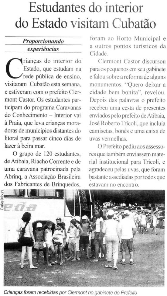 e São Vicente. As crianças retornam para suas cidades de