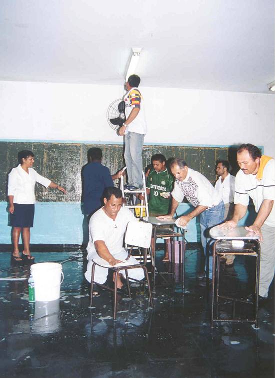 cuidadosa das cadeiras e carteiras escolares, pintura de portas, pequenos
