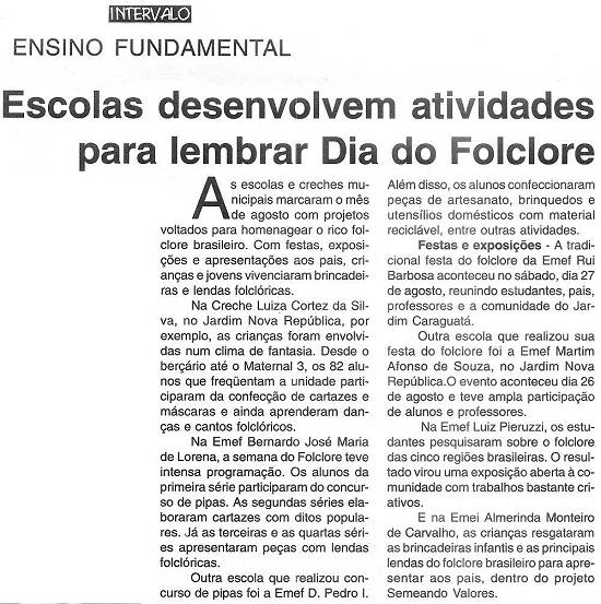 atividades da EMEF. "Lorena" em comemoração ao Dia do Folclore