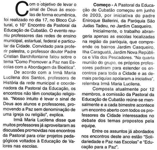 da Pastoral da Educação, no dia 17 de setembro de 2005, que
