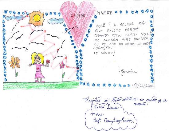 sendo que o produzido pela aluna Maria Luiza, da 1ª série A-2,