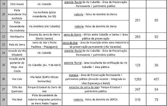 A fiscalização nas áreas de preservação não tem se mostrado suficientemente adequada para impedir a continuidade de invasões;