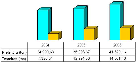 A coleta, remoção e a disposição final dos resíduos sólidos são feitos mediante a contratação com terceiros.