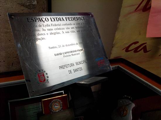 Hemeroteca Pública Municipal de Santos criou um Espaço Lydia Federici, onde estão expostos desde sua máquina de escrever até os troféus desportivos, bem como os organizados álbuns de recortes reunindo todos os seus textos publicados. Estas são algumas