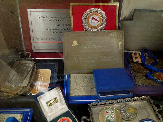 Medalhas e objetos de Lydia Federici, em seu Espaço na Hemeroteca Municipal