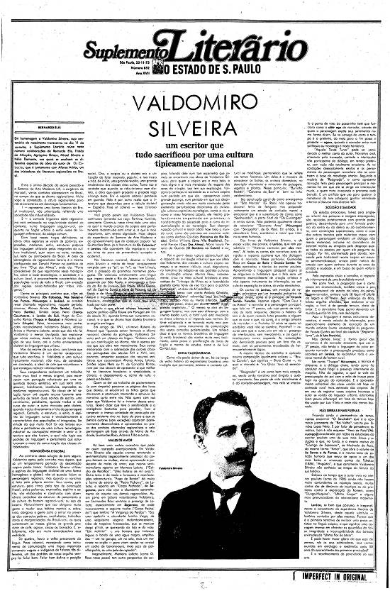 Em homenagem a Valdomiro Silveira, cujo centenário de nascimento transcorreu no