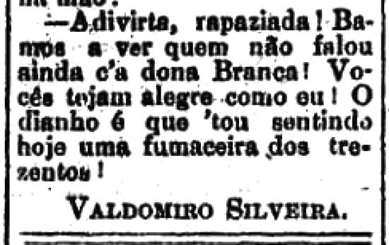 - Adivirta, rapaziada! Bamos a ver quem não falou ainda c'a dona Branca! Vocês tejam