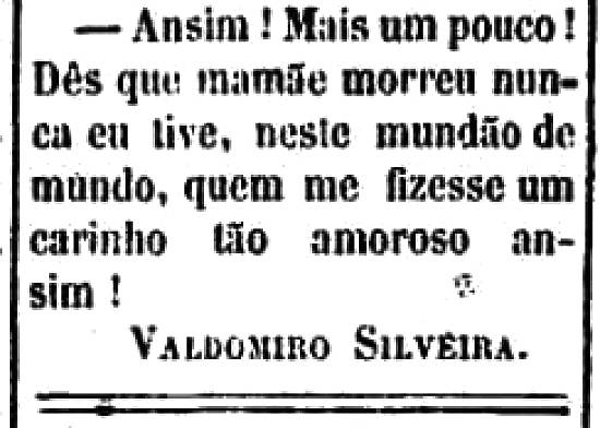 - Ansim! Mais um pouco! Dês que mamãe morreu nunca eu tive, neste mundão de mundo, quem me fizesse um carinho tão