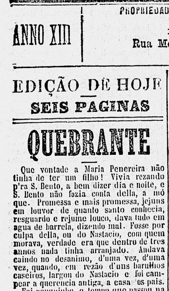 era de mais. Seguiam-n'a de longe. Assim que se aproximava da venda da encruzilhada, já ia aos brados chamando pela irmã: