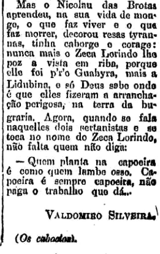 Um dia de sábado, remexendo o Nicolau uma capoeirinha rala que tem ali perto da Maria Alves, em procura de uma tal planta chamada