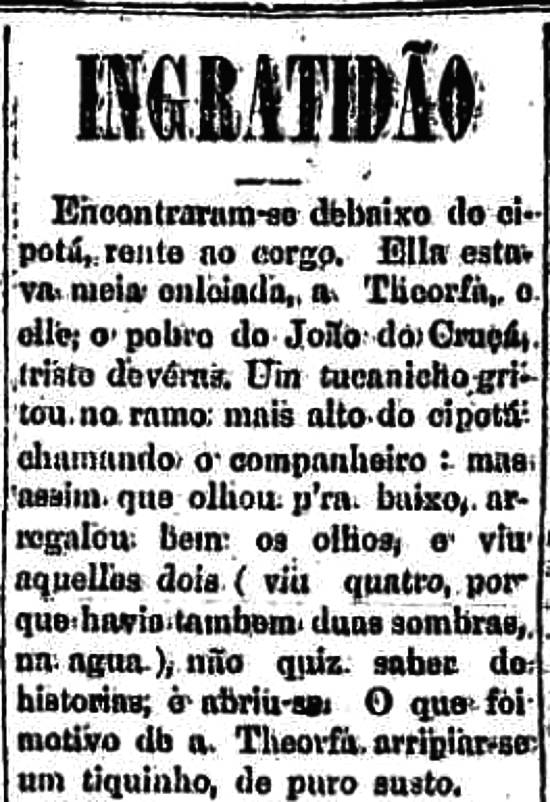 E como a Theorfa olhasse de frecha p'ra ele, admirada, o João falou-lhe: