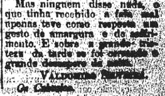 de amargura e de sofrimento. E sobre a grande tristeza da tarde se foi ornando o grande desespero da noite.