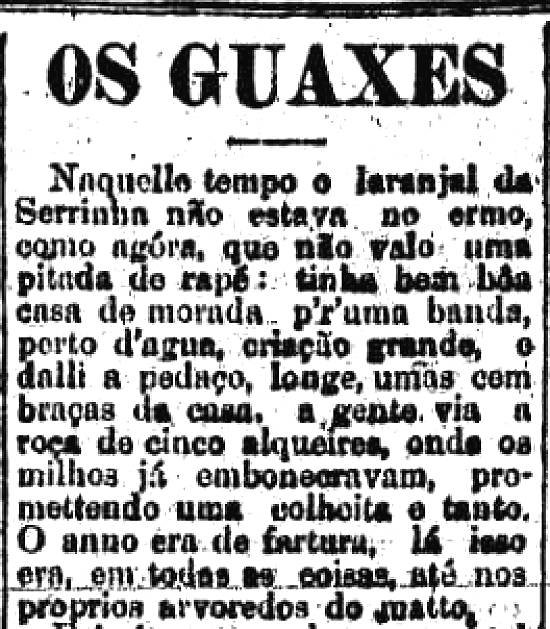 laranjal, e um casal de guaxes passou pelo ar, gritando, que não tinha mais jeito, o Reimundo falou p'ra nhá Lina, em segredo:
