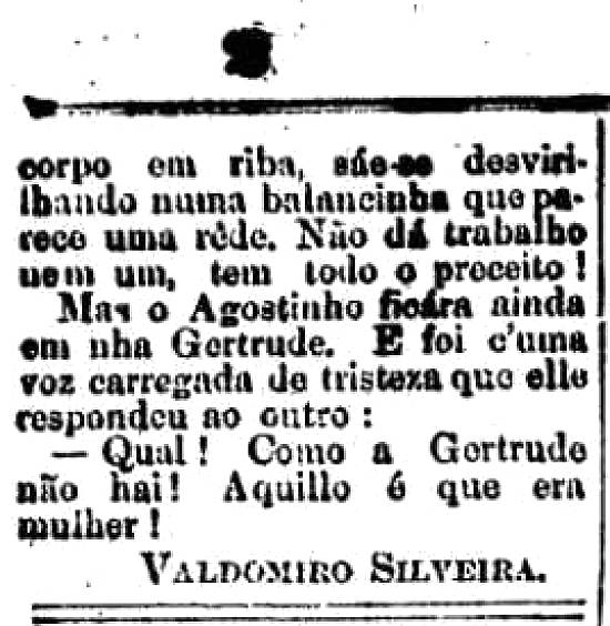Mas o Agostinho ficara ainda em nhá Gertrude. E foi c’uma voz carregada de tristeza que ele respondeu ao outro: