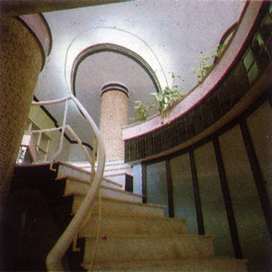 Detalhe da escada e pilar do saguão de entrada do Verde Mar