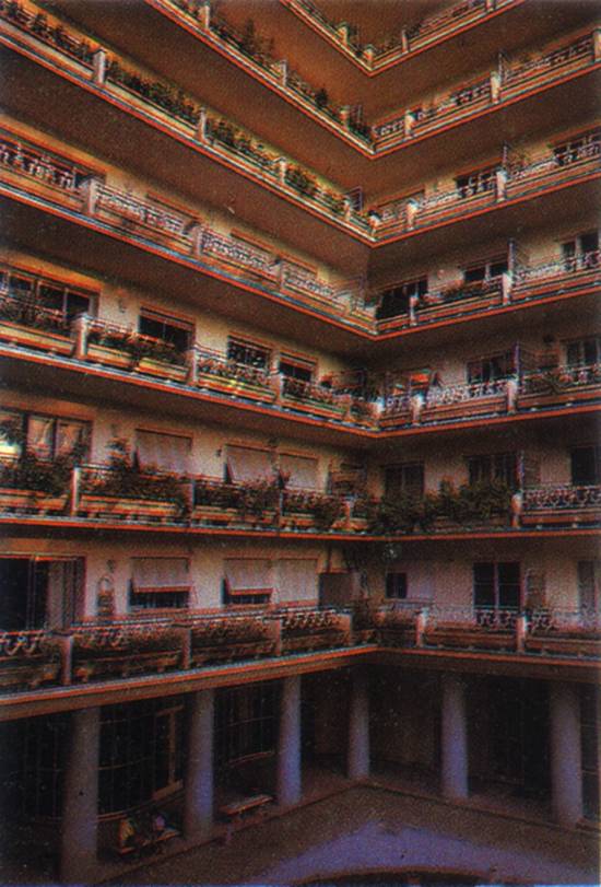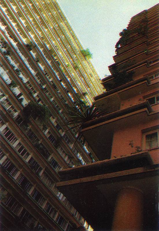 materiais. Faz conjuntos de edifícios aparentemente independentes, mas compondo um corpo único. As costas dos edifícios são nuas, como próprio às