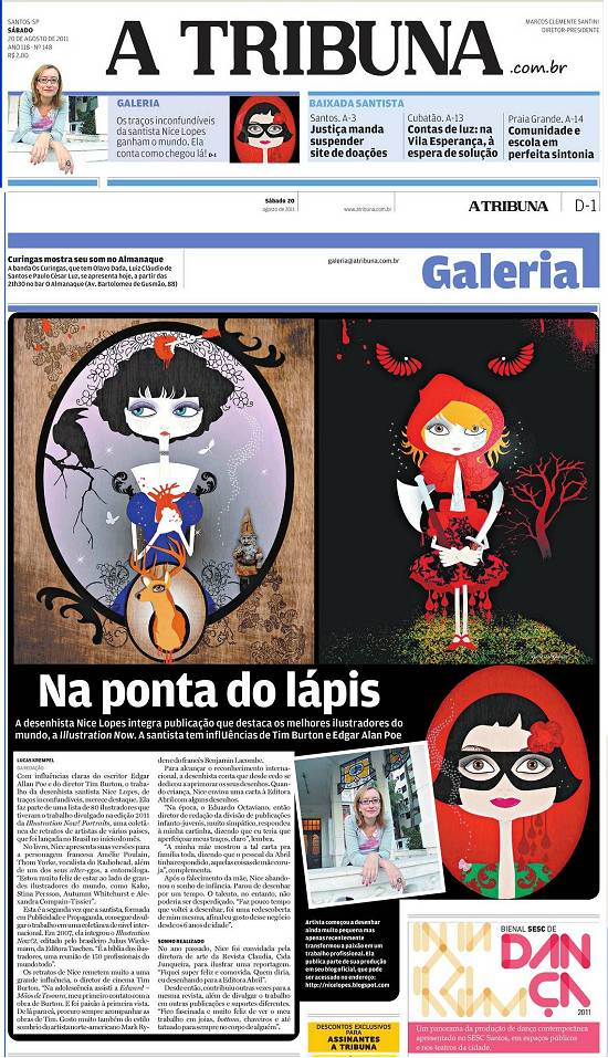 Tribuna, páginas A1 (parcial) e D1 de 20 de agosto de 2011
