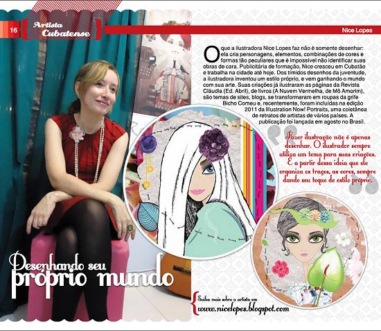 Nice foi convidada pela diretora de arte da Revista Claudia, Cida Junqueira, para ilustrar uma reportagem. "Fiquei super feliz e
