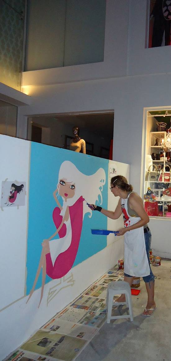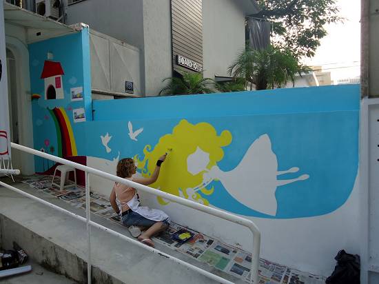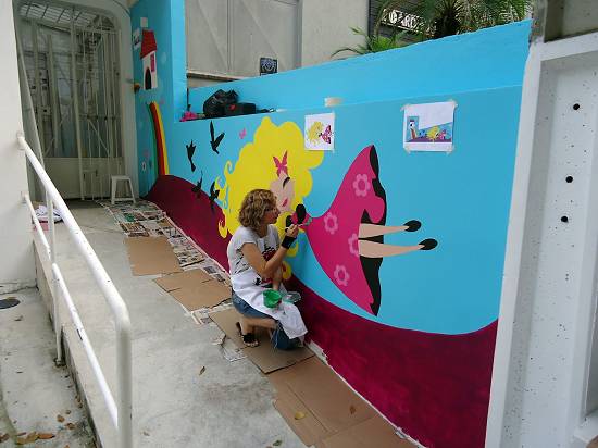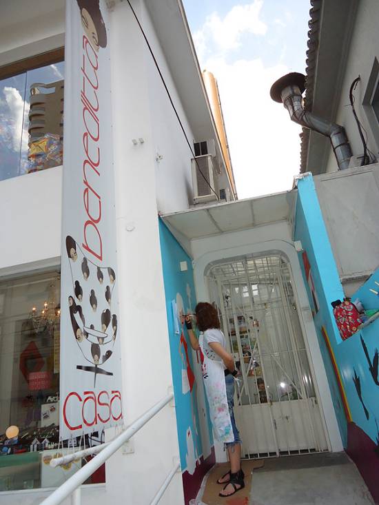 2012, realizou com o artista Gabriel Montenegro a decoração da fachada da Beneditta Casa, na Rua Azevedo Sodré, em Santos: