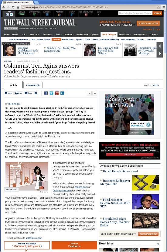 Imagem: captura de tela da versão digital do The Wall Street Journal de
