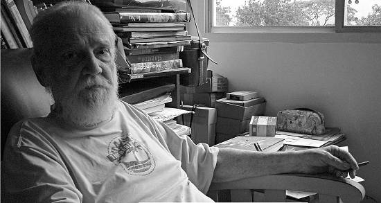 De banho recém-tomado, cigarrilha em punho e cara de poucos amigos, o pintor e gravador santista falou de Mário Gruber
