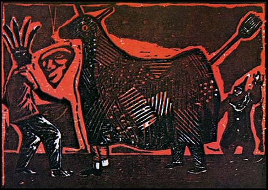 Carnaval na rua - xilografia -
