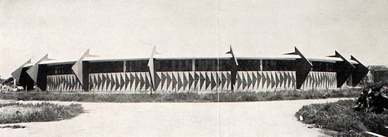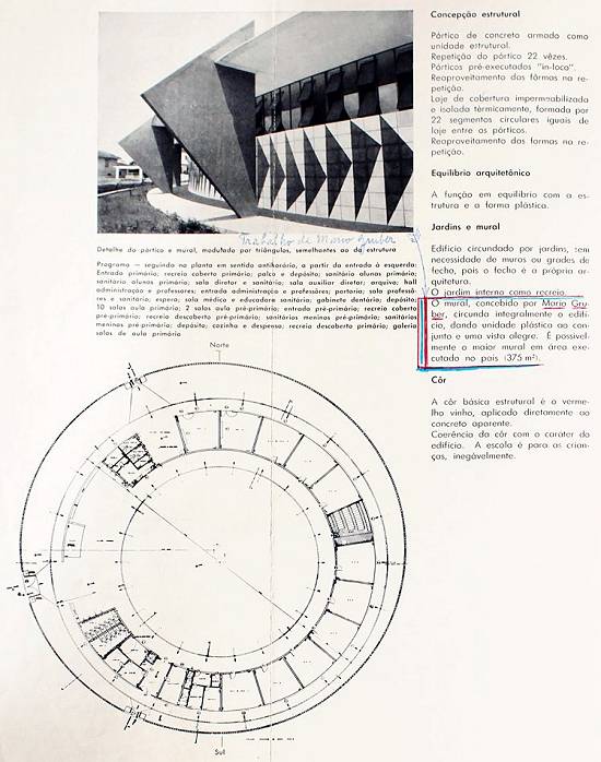 incluindo um painel de 375 m² confeccionado por Mário Gruber. A escola, apelidada de Maracanãzinho por seu formato circular, foi instalada na