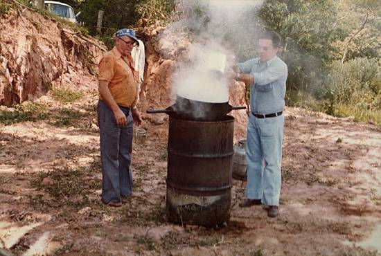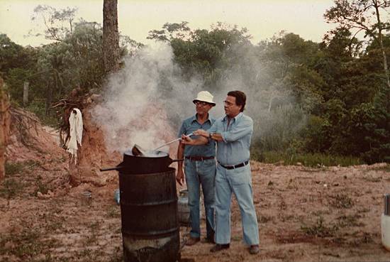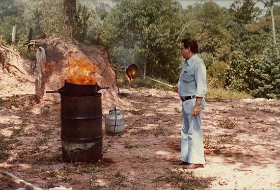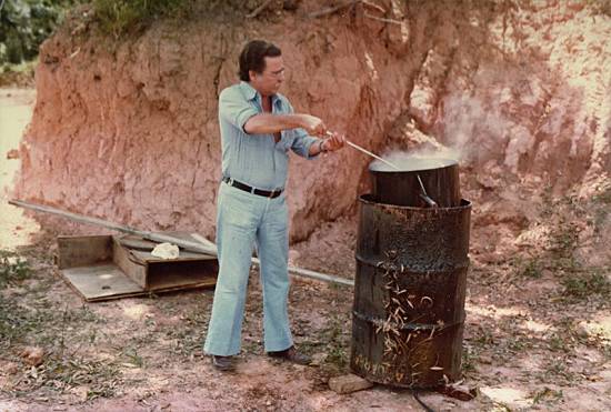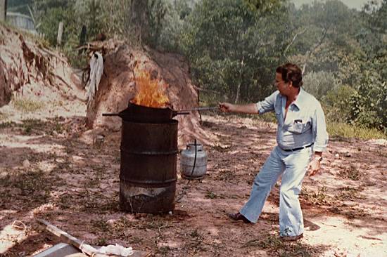 de Mário Gruber preparando o "óleo negro", uma receita renascentista de aglutinante usada pelos grandes mestres do passado. Com ele, o artista preparava