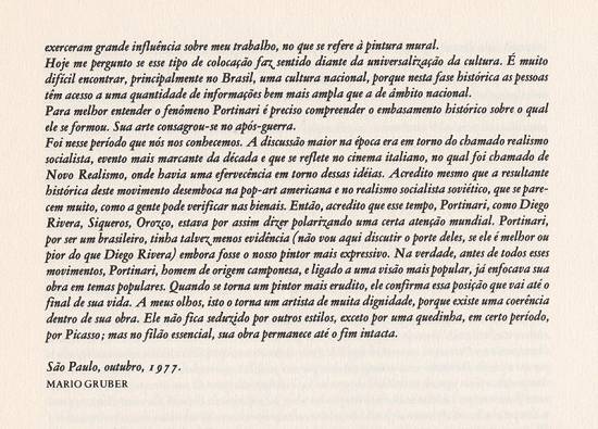nas páginas 133 a 136 um texto de outubro de 1977 em que Mário Gruber descreve a sua relação com Portinari. As imagens foram divulgadas no