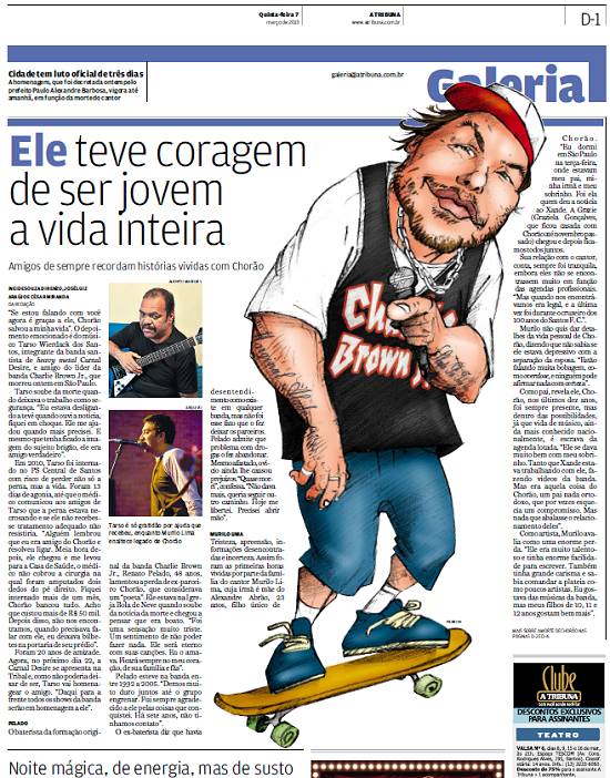 sobre a morte de Chorão, fundador do Charlie Brown Jr. O corpo está sendo velado na Arena Santos e será sepultado hoje, na